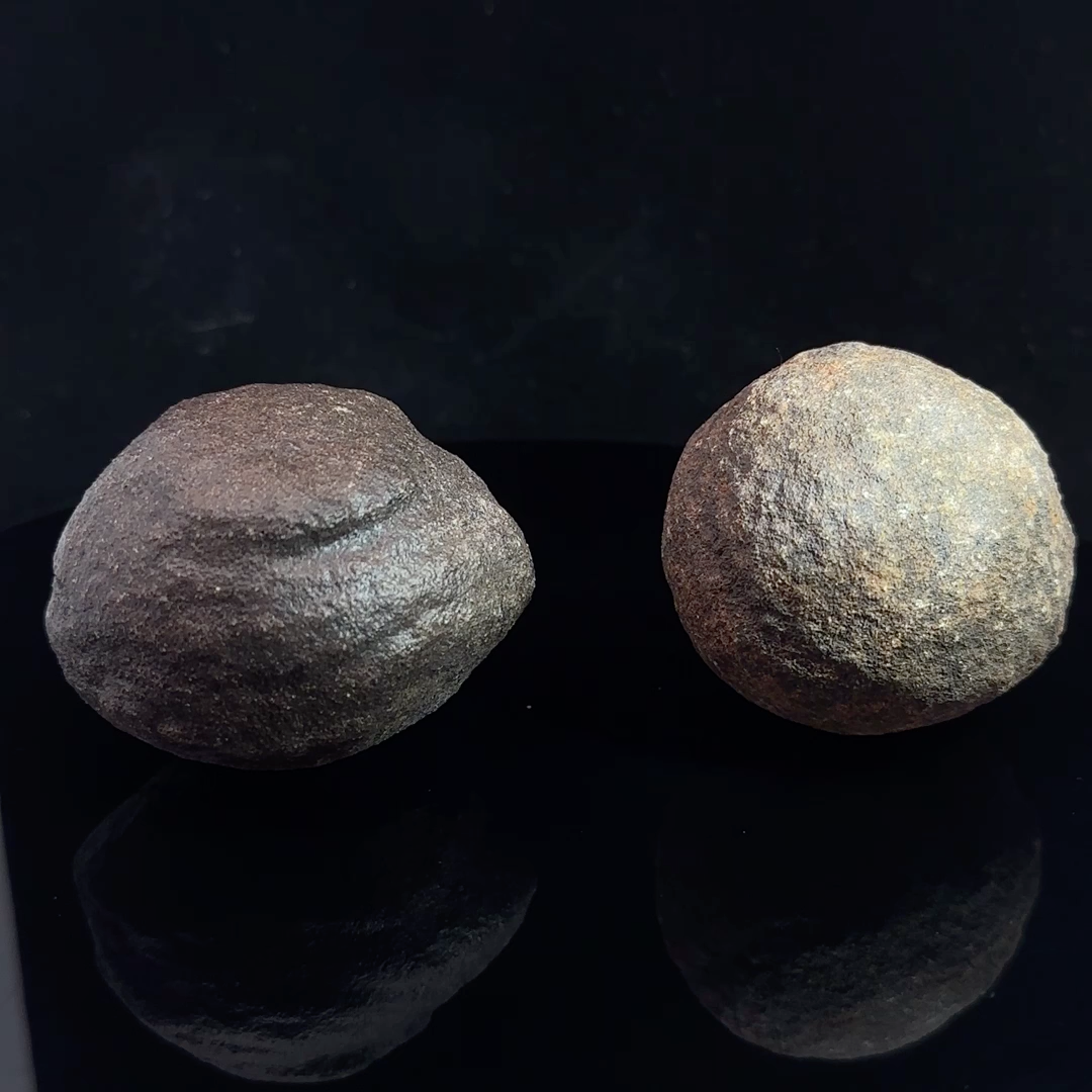 Paire de Moquis Balls de taille supérieure (entre 4 et 6cm). Autrefois surnommées « pierres des chamans », les Moquis Balls étaient considérées comme des pierres sacrées par les amérindiens. Elles sont principalement utilisées pour les rééquilibrages énergétiques.
